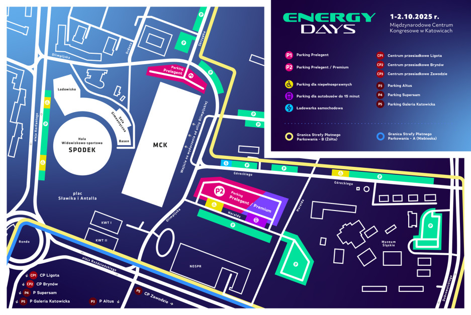 Dla gości konferencji Energy Days udostępniamy parkingi zlokalizowane na terenie Strefy Kultury – przy budynku Narodowej Orkiestry Symfonicznej Polskiego Radia.